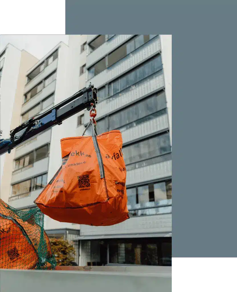 Merk sekkene med avfallstype, fyll dem opp og bestill deretter henting. Vi frakter avfallet til et avfallsmottak, slik at det som kan materialgjenvinnes blir til nye ting.